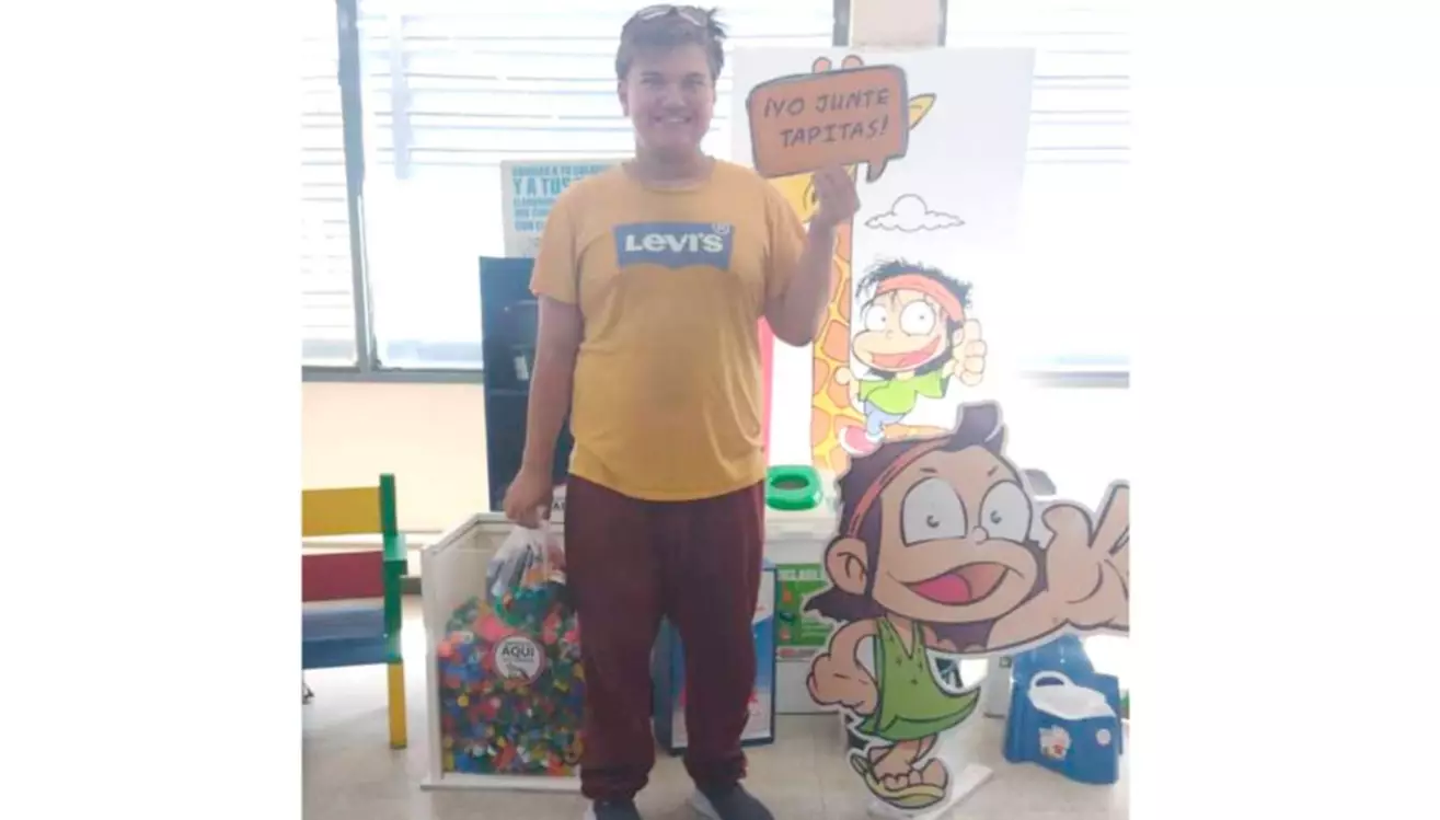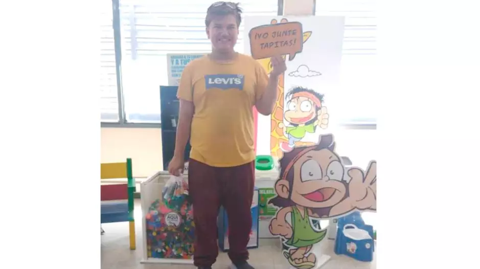Este joven de 17 años, Nicolás Conti, se hizo presente en la mañana de ayer en EL CHUBUT con bolsas de tapitas para sumar a la iniciativa solidaria de este medio para con la Fundación Garrahan.