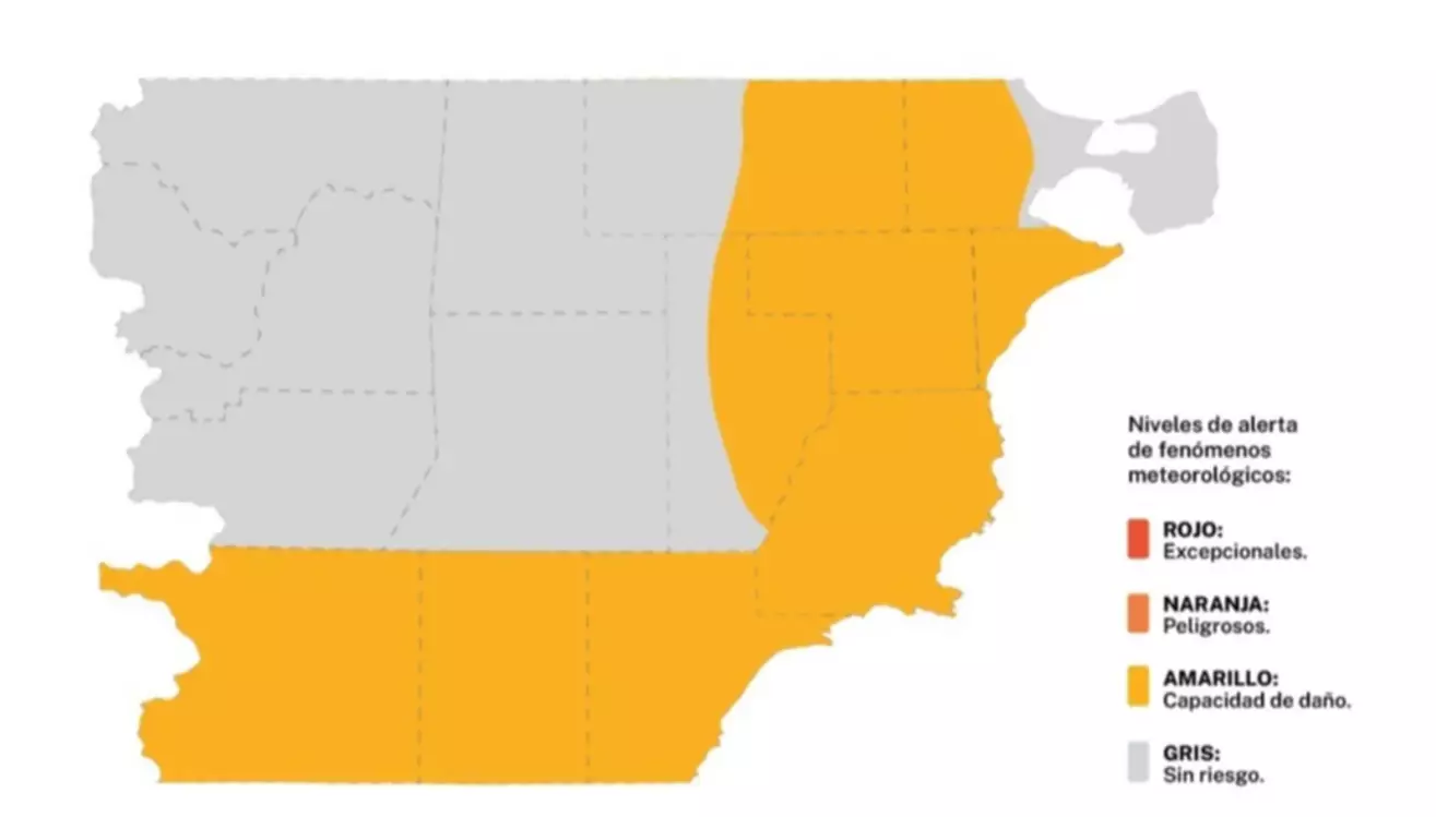 Para el martes 24, se prevé la continuidad del fenómeno durante las primeras horas del día, incorporando a la zona de Costa de Biedma y exceptuando al departamento Río Senguer respecto del aviso inicial.