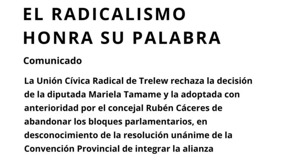 COMUNICADO DE LA UCR - Últimas Noticias: El Chubut