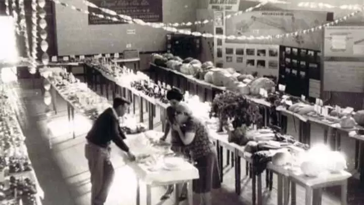 Compartió con EL CHUBUT un adelanto sobre la muestra, con fotos de los primeros años de desarrollo de la Muestra, entre seis y cuatro mesas, prolijamente presentadas con las verduras y frutas.