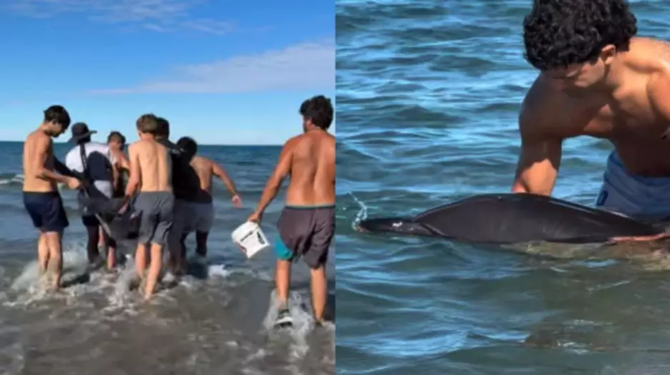 Rescataron y devolvieron al mar a un delfín varado en Playa Piedra Guacha