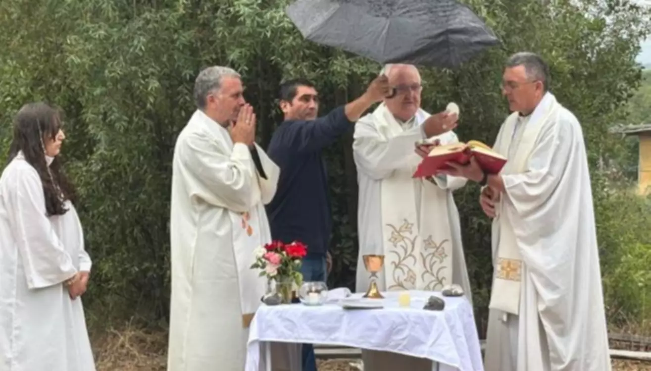 Mientras se desarrollaba la celebración, una lluvia suave comenzó a caer sobre el lugar, gesto sencillo que fue recibido con emoción y gratitud por los presentes, como un signo de consuelo y esperanza para toda la comunidad.