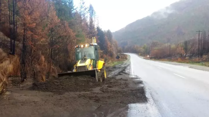 Con personal y equipos propios, Vialidad Nacional despejó barro de la calzada, que durante la madrugada de ayer se deslizó sobre la Ruta 40, entre las localidades de Epuyén y El Hoyo.