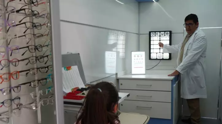 La recorrida por el dispositivo fue realizada por el secretario de Gobierno, Mario Arriagada, junto al director de la escuela secundaria, Agustín Silfeni, quienes pudieron interiorizarse sobre el funcionamiento del camión, que permite realizar diagnósticos, mediciones y la fabricación de lentes en el mismo día.