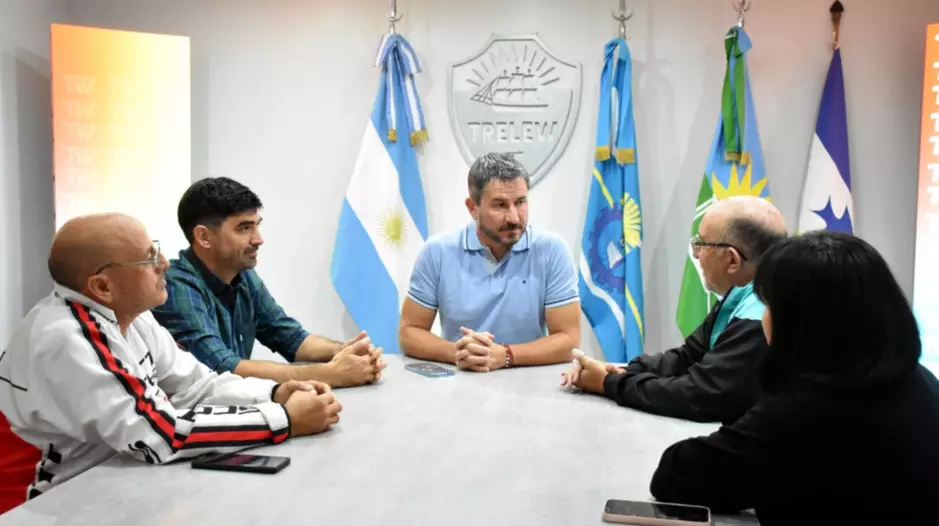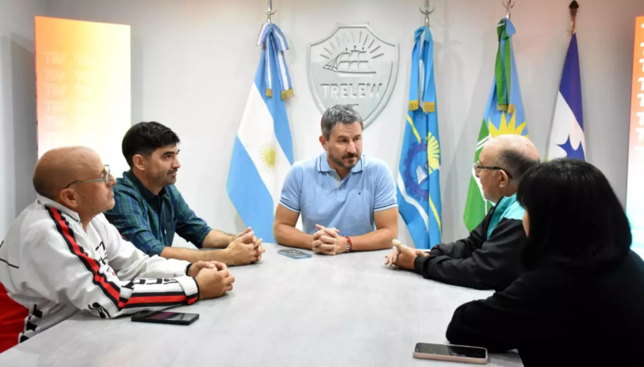 El intendente de Trelew, Gerardo Merino, recibió, junto al secretario de Planificación y Desarrollo Urbano, Julián Montes, a miembros de la Asociación Civil Plan de Viviendas Barracas, donde se abordó la reactivación de la obra del barrio Barracas, paralizada desde hace más de tres décadas.