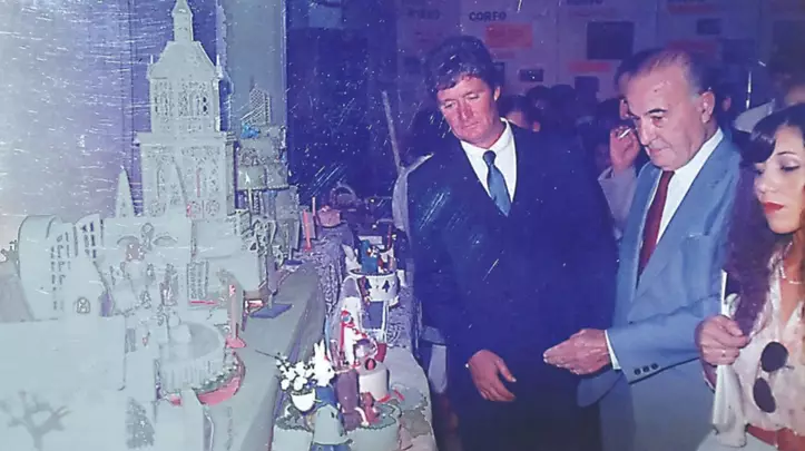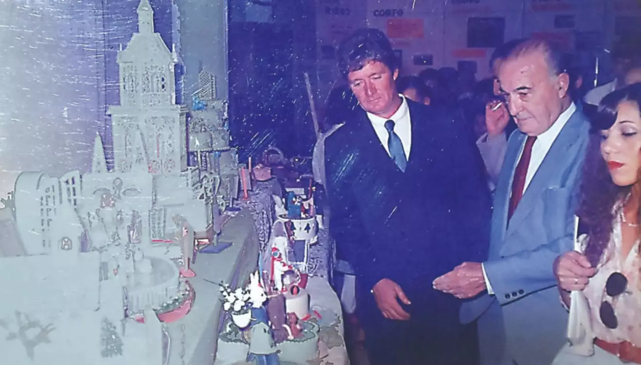 Una imagen de principios de la década del ’80: el entonces gobernador de Chubut, Atilio Viglione junto al presidente y creador de la Muestra Agropecuaria del Valle, Benito Owen.