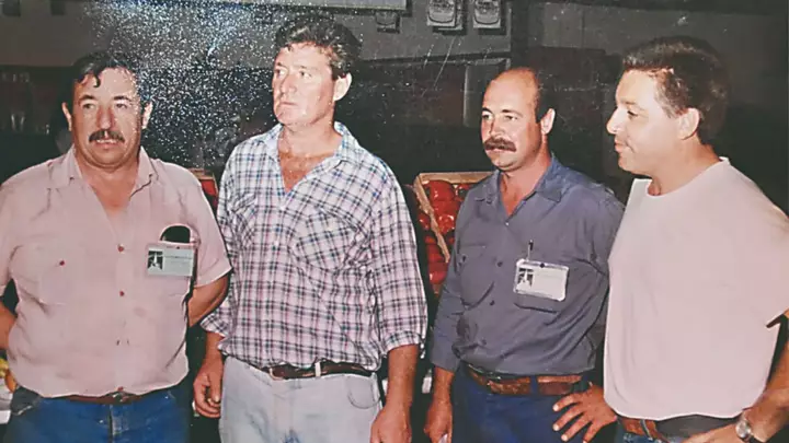 Benito Owen junto a Carlos Barragán, quien también fuera concejal y presidente de la comisión organizadora de la Muestra Agropecuaria en la década del ’90.