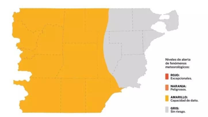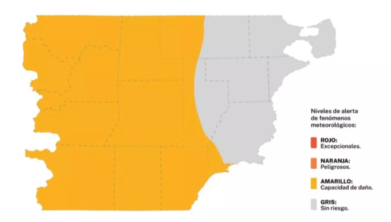 De acuerdo al parte emitido por el Servicio Meteorológico Nacional, las zonas afectadas serán alcanzadas por vientos del sector oeste, con velocidades estimadas entre 40 y 65 kilómetros por hora, y ráfagas que pueden superar los 90 kilómetros por hora.