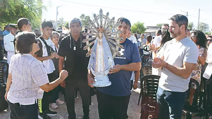 En el barrio Corradi se recibió a la imagen original y se presentó a la réplica, que será entronizada el próximo 1 de mayo.