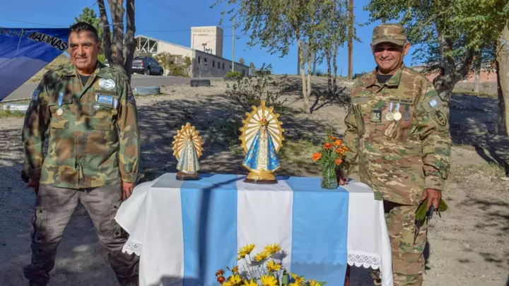 La historia de la Virgen Malvinera está ligada a dos veteranos de Chubut. Ayer, en la plazoleta «Héroes de Malvinas» del barrio Corradi, se vivió un clima de emoción, de fe y de reencuentros en el acto llevado a cabo en vísperas del 44 aniversario de la gesta.