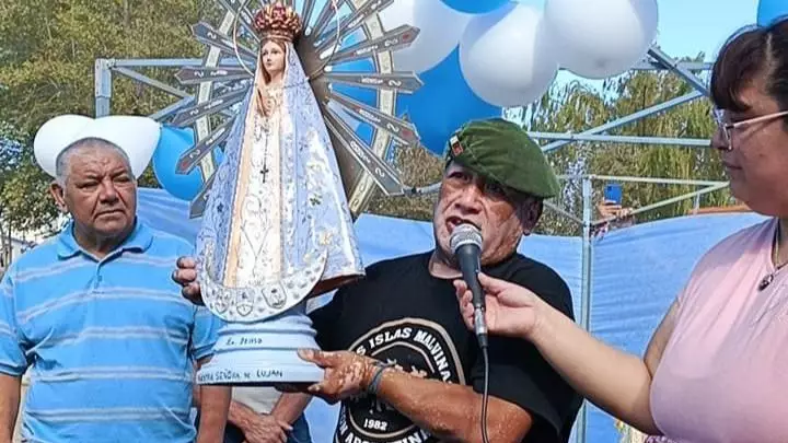 Mario Jara, veterano de Malvinas y vecino del barrio Corradi, fue uno de los anfitriones y destacó este acto y la importancia de la Virgen Malvinera para los chubutenses.