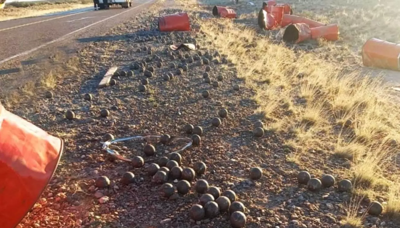 Choque y vuelco de carga de bolas de acero en Ruta 3 - Últimas Noticias: El Chubut