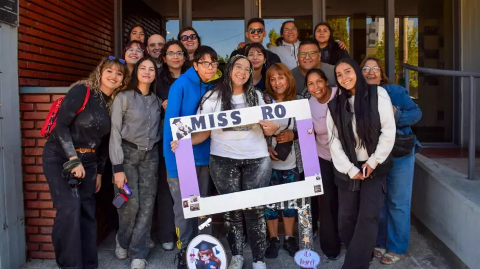 La joven Rocío Aylén Cochia se recibió ayer de profesora de inglés, finalizando sus estudios terciarios en el Instituto Patagónico de Profesorado de Inglés (IPPI). Como es tradición, recorrió las calles de la ciudad celebrando su logro y llegó junto a su familia y amistades a diario EL CHUBUT. Rocío cursó sus estudios primarios en la Escuela 201 del barrio Los Aromos y el secundario en la Escuela 712.