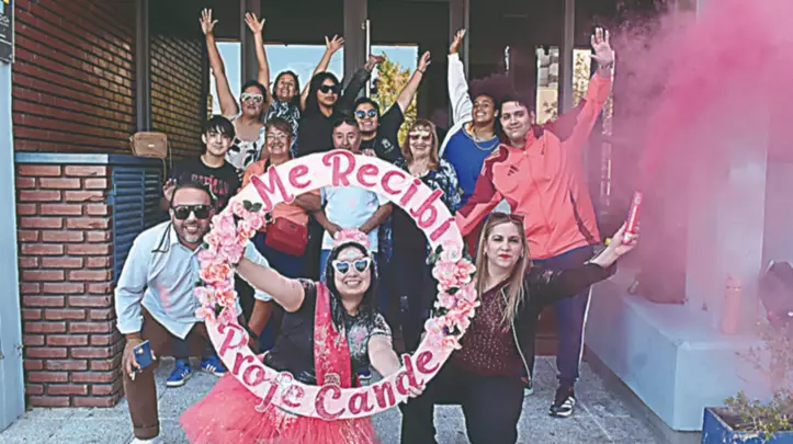 La flamante profesora de Educación Física, es nacida y criada (nic) en Trelew y porque quiere y ama su entorno, ha decidido ejercer su profesión en la ciudad que la vio nacer. Al momento del festejo y la foto para la posteridad, estuvo acompañada por sus padres Natalia Zárate y Luis Suárez, junto a familiares maternos y paternos, y demás amigos y amigas.