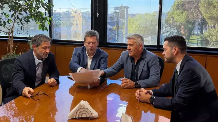 Del encuentro participaron el presidente del Banco del Chubut, Paulino Caballero; los directores Jorge Rubiolo y Emiliano Álvarez Raso; y el intendente de Gobernador Costa, Miguel Gómez.