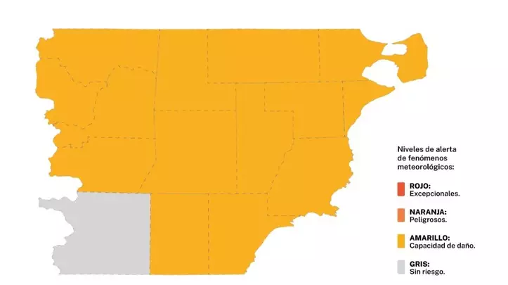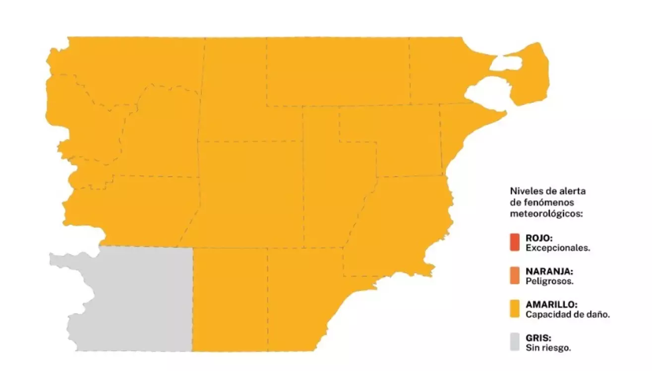 El alerta abarca los departamentos de Cushamen, Futaleufú, Languiñeo, Tehuelches, Gastre, Paso de Indios, Telsen, Mártires, Biedma, Gaiman, Meseta de Florentino Ameghino, Costa de Florentino Ameghino, Rawson, Sarmiento y Escalante.