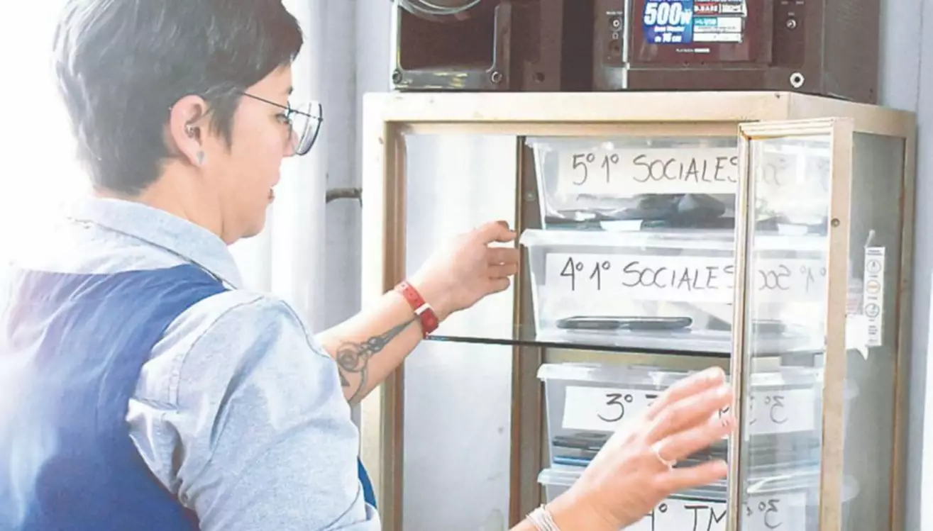 Las medidas comenzaron el lunes y ayer EL CHUBUT compartió los momentos de ingreso y egreso al establecimiento educativo, donde pudo observar a los alumnos cargando sus utiles escolares en bolsas de nylon transparente, mientras en preceptoría se recibián los celulares que portaban los alumnos, quedando a buen recaudo hasta el término de las clases.