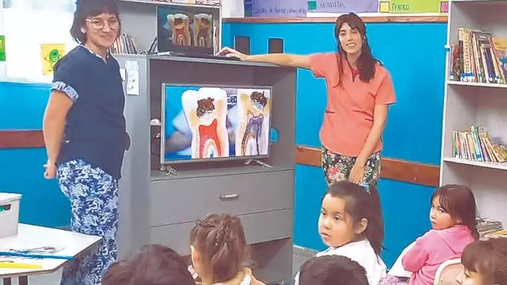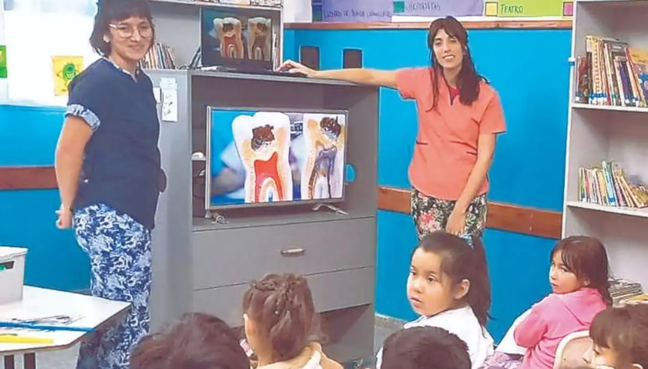 Se abordó el tema de salud buco-dental, con la presencia de las odontólogas Carolina Vales y Eliana Peruzotti, quienes presentaron una propuesta dinámica en la enseñanza del cuidado de los dientes para los chicos de 2do y 3er grados.