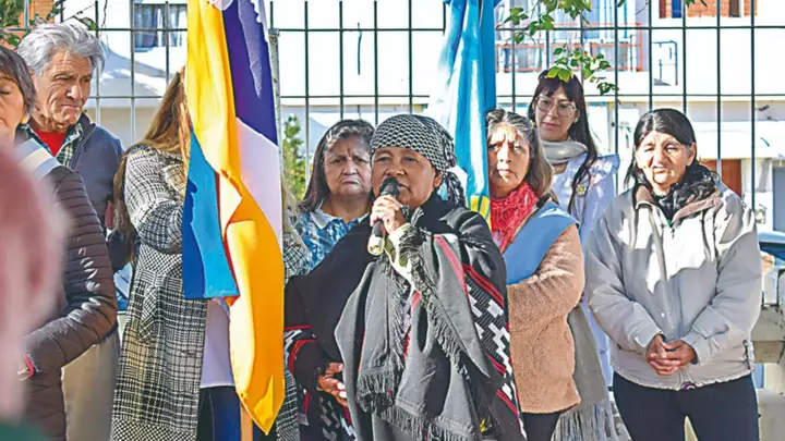 La Bandera Mapuche, creada por don Julio Antieco de Costa del Lepá, paraje rural ubicado a 20 kilómetros de Gualjaina, fue presentada en la víspera en la sede del establecimiento, ubicado en el complejo educativo situado en San Martín, entre Ramón y Cajal y Edison.