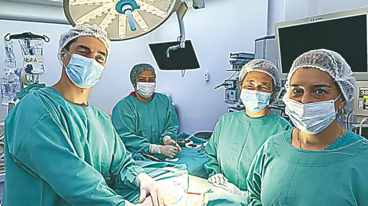 El equipo profesional a cargo de este procedimiento estuvo integrado por la Dra. Natalia Gómez, el Dr. Matías Loccisano, la Dra. Silvia Sugioka, la instrumentadora quirúrgica Adriana y el técnico de I&S Medical, Manuel Mansilla.