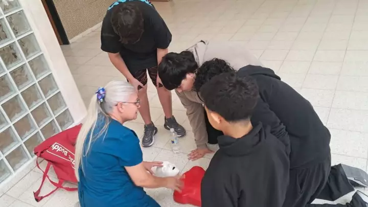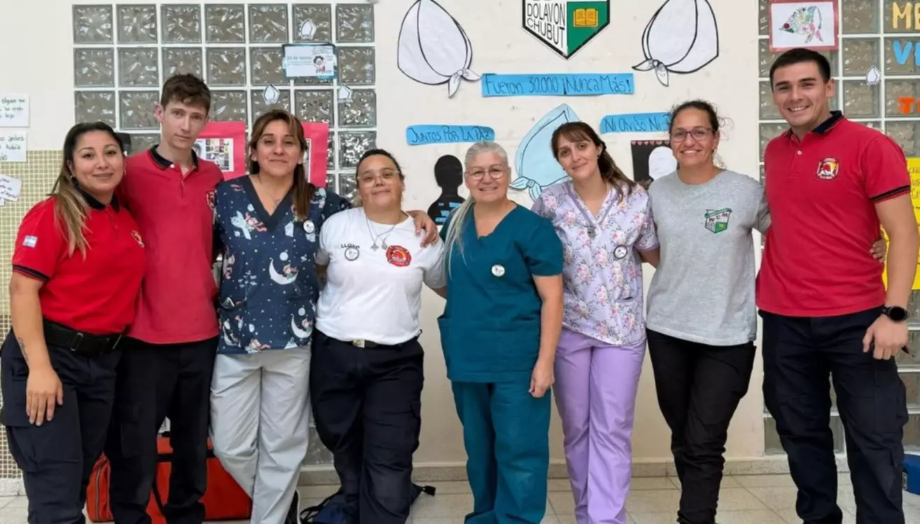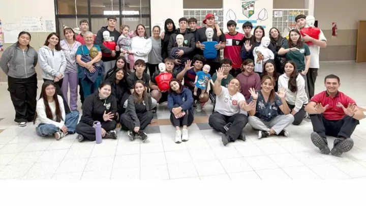 Personal de salud del Hospital Rural de Dolavon y bomberos de esa localidad brindaron una capacitación de RCP en el Colegio William Morris. Participaron alumnos del segundo ciclo del Nivel Primario en el marco de una propuesta de la profesora de Educación Física, Melisa Díaz.