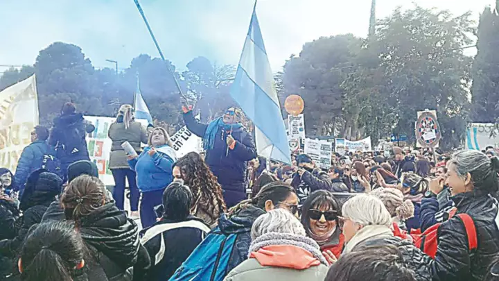 Una masiva movilización de empleados públicos provinciales autoconvocados se realizó este martes en Rawson en reclamo por la situación salarial y la apertura de paritarias, en el marco de un conflicto que involucra a trabajadores de distintos organismos del Estado. La concentración se inició frente al Ministerio de Educación y luego avanzó por la Secretaría de Salud, la Casa de Gobierno y la cartera de Economía, con la participación de trabajadores de la salud, auxiliares de la educación, docentes y otros sectores estatales.