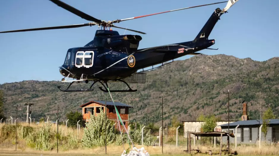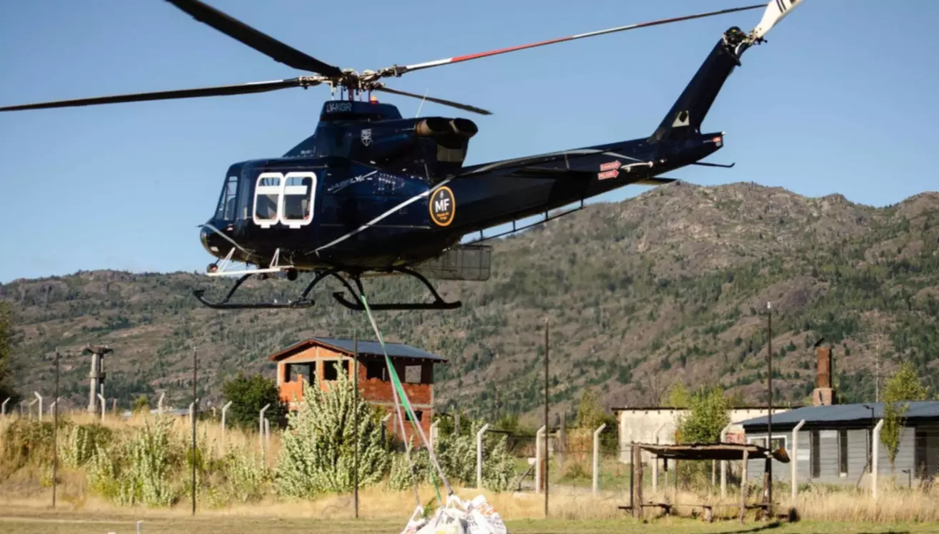 El operativo, realizado días pasados a través de la Secretaría de Bosques provincial, constituye un verdadero hito logístico, técnico e institucional. Dos helicópteros que prestan servicio para la Agencia Federal de Emergencias (AFE), y que recientemente participaron en el combate de los incendios en la comarca, fueron utilizados para concretar esta compleja tarea que demandó una capacidad operativa excepcional y una articulación interinstitucional de alto nivel.