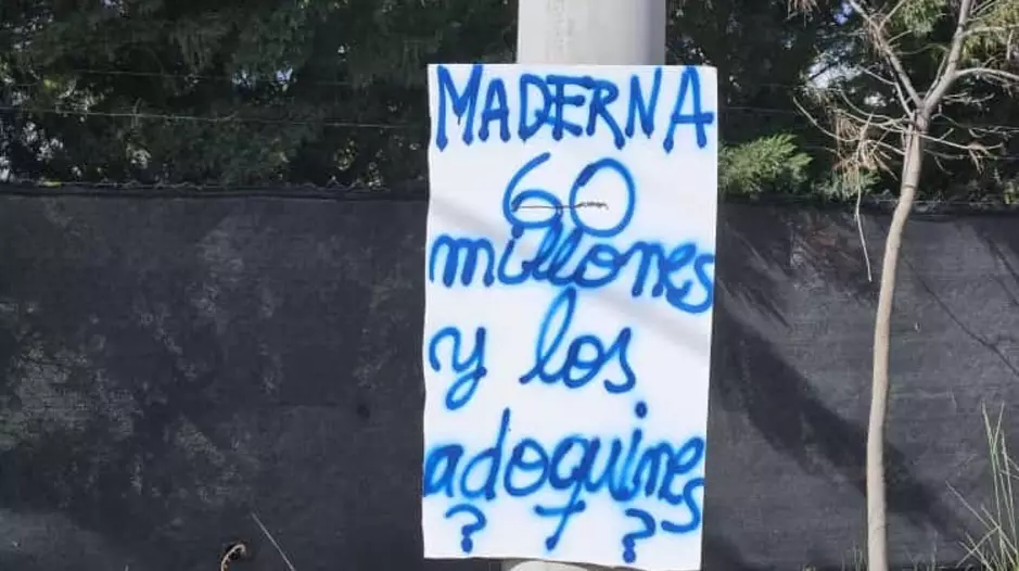 Un vecino nos envió a nuestro WhatsApp (2804662251) por la colocación de un nuevo cartel que hicieron los residentes del barrio Los Teros, con dedicatoria al intendente saliente de Trelew, Adrián Maderna.