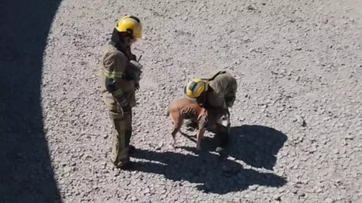 Bomberos de Trelew rescataron a un perro que cayó a un tanque vacío