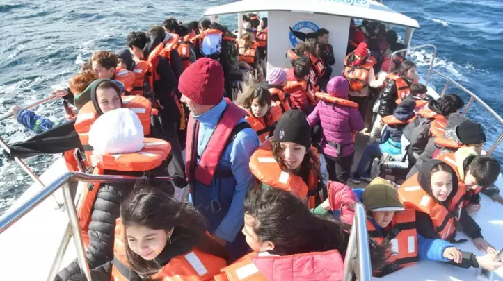 Los estudiantes del último año del nivel Primario de la educación realizaron el avistaje de ballenas en Puerto Pirámides, acompañados de docentes y tutores.