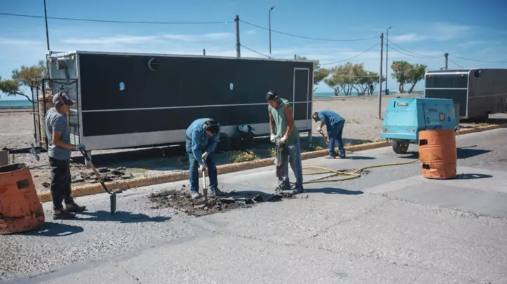 La Secretaría de Obras y Servicios Públicos de Rawson continúa con el plan integral de bacheo para mejorar las arterias de la villa balnearia y optimizar la circulación vial.