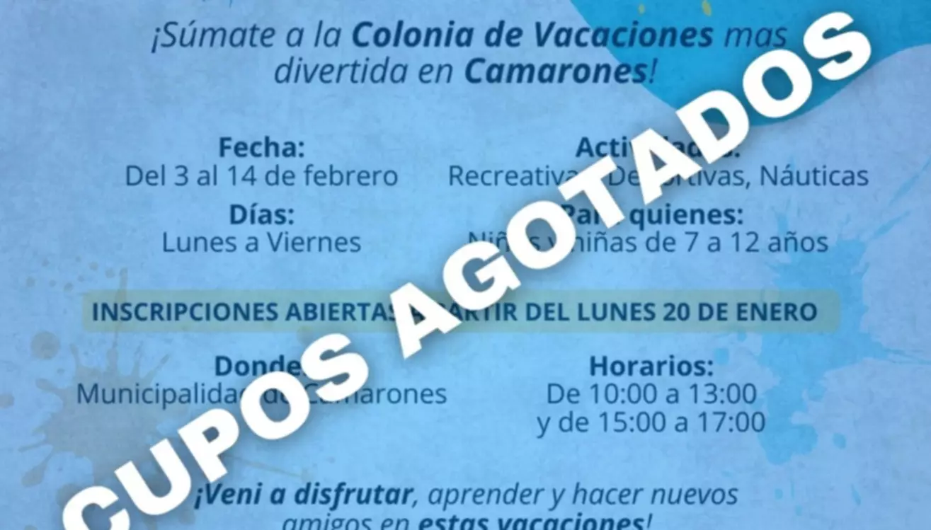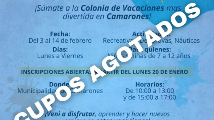 Colonia de Vacaciones 2025 en Camarones: Cupos agotados