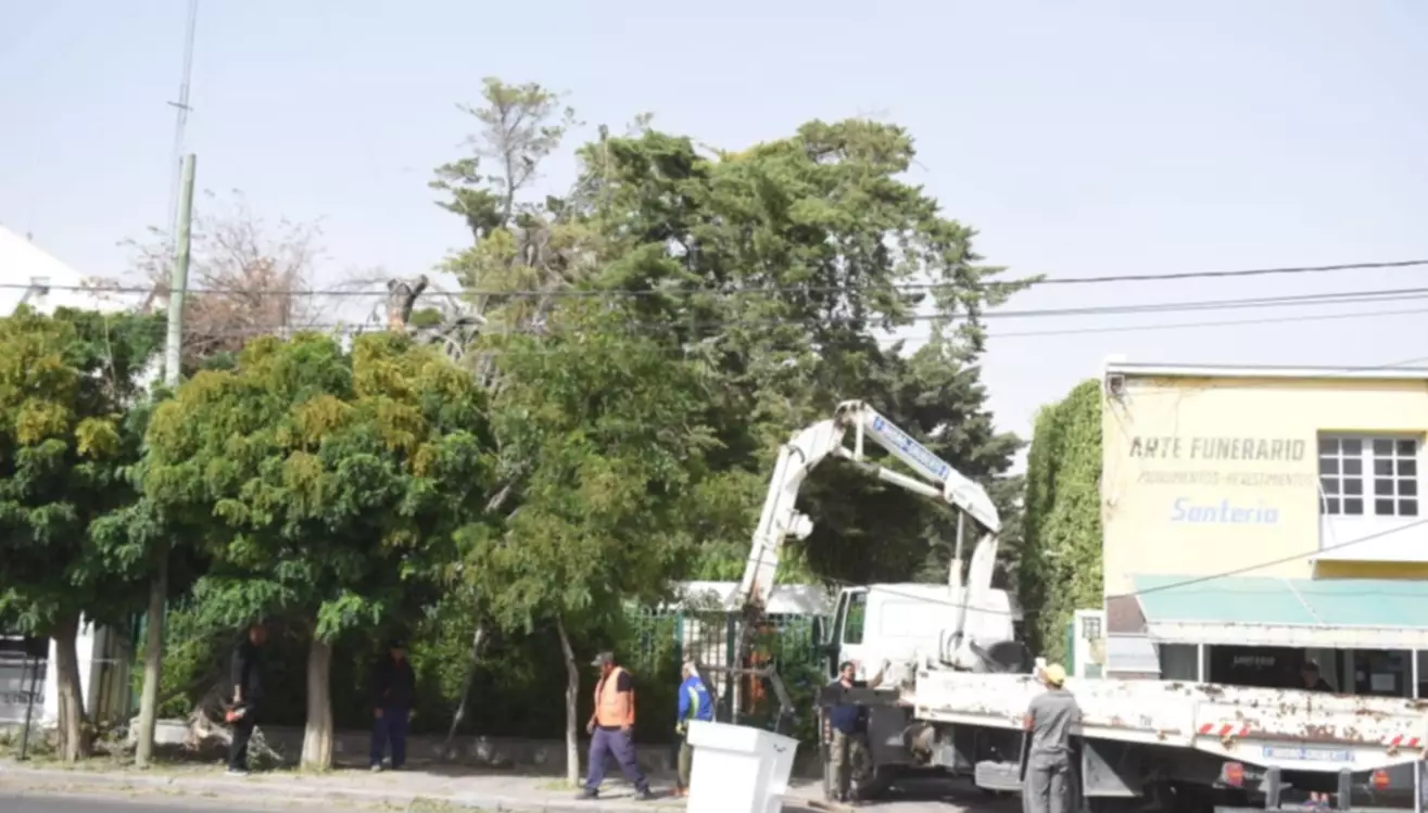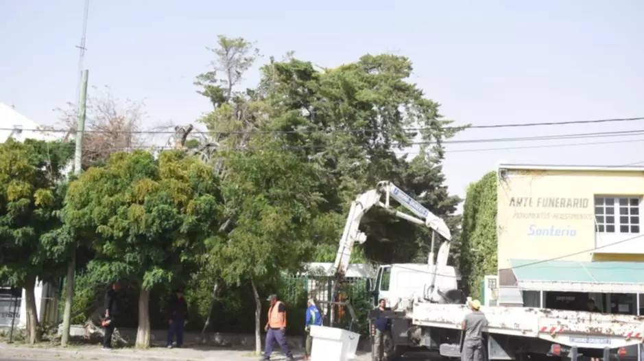 La intervención respondió a que el árbol en cuestión ocasionaba inconvenientes con la red de energía eléctrica, por lo cual se comenzó a trabajar en su retiro con una grúa y máquinas de cote.