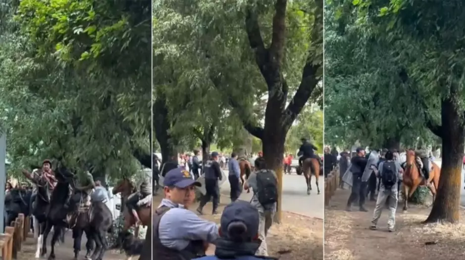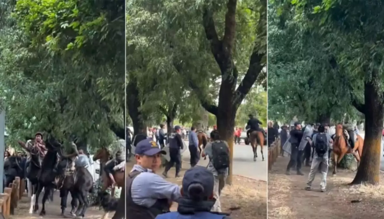 En el material audiovisual, se puede visualizar como los hombres a caballo se revelaban ante los activistas de Río Negro, mientras que los demás allegados agredían a la policía.