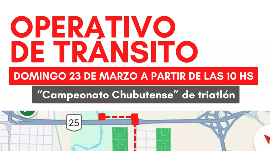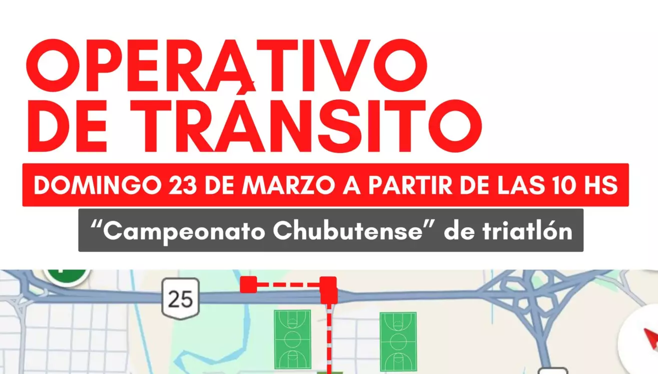 La Municipalidad de Trelew informa que este domingo 23 de marzo, por la mañana, se realizará un operativo de tránsito en zona de chacras, por el desarrollo de una actividad deportiva.