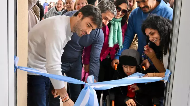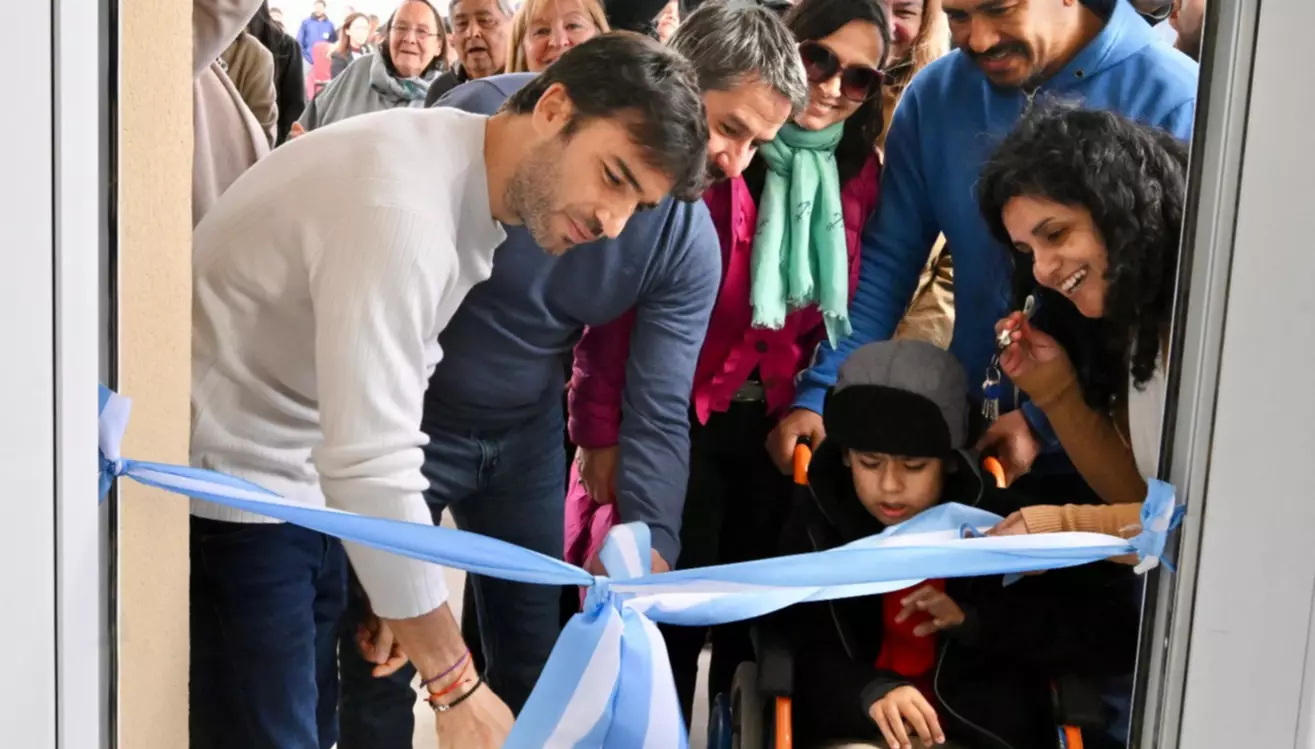 Tras entregar las llaves de sus viviendas a las 17 familias de Trelew, el gobernador realizó el tradicional corte de cintas en una vivienda adaptada y construida para una familia que esperó 22 años para cumplir el sueño de la casa propia.