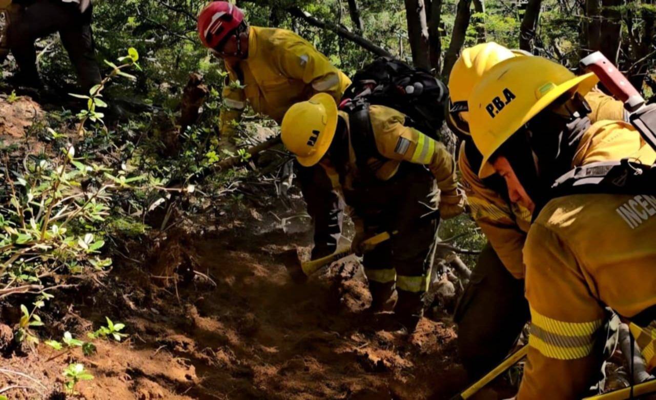 En el Cañadón de Roberts, brigadistas de Córdoba contuvieron reactivaciones con herramientas manuales y equipos de agua. En tanto, en los sectores Container y Vaca Muerta no se registró actividad sobre el perímetro, aunque persisten puntos calientes dentro del área afectada.