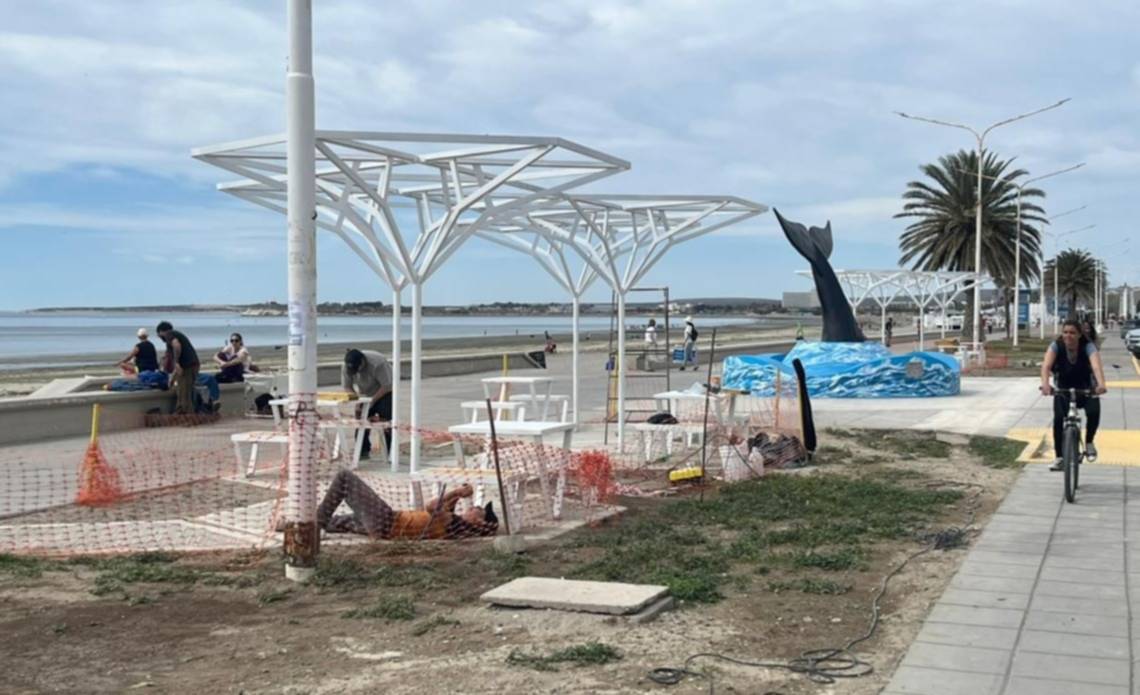 En la intersección de Boulevard Brown y Storni donde se encuentra el monumento a la ballena, se está por finalizar la construcción del espacio de recreación en la rambla.