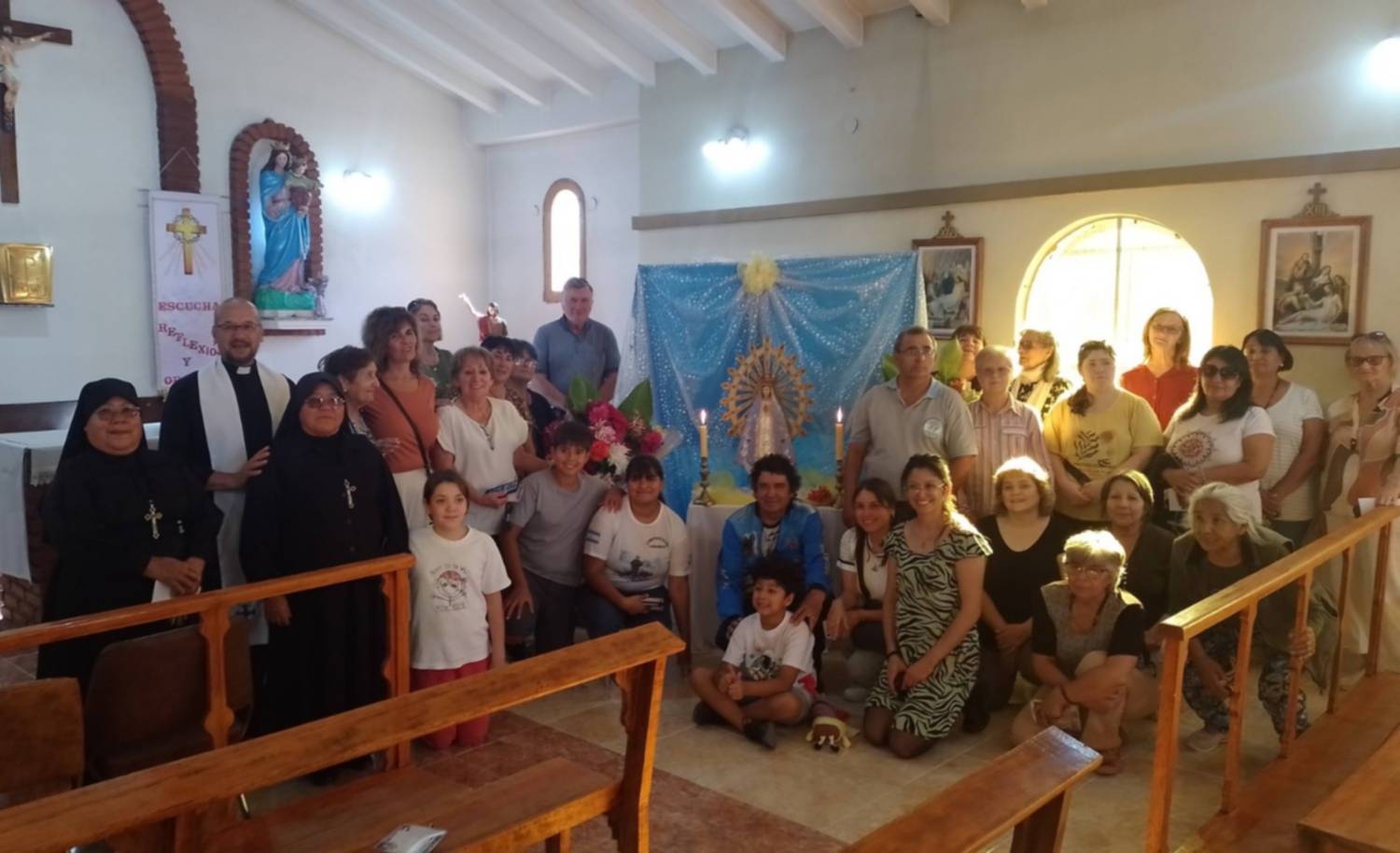 Posteriormente, continuó su recorrido y fue recibida en la parroquia Nuestra Señora de Luján de Gaiman, donde se celebró un nuevo oficio religioso con la presencia del intendente, Dario James, funcionarios municipales y numerosos peregrinos que se acercaron a participar.