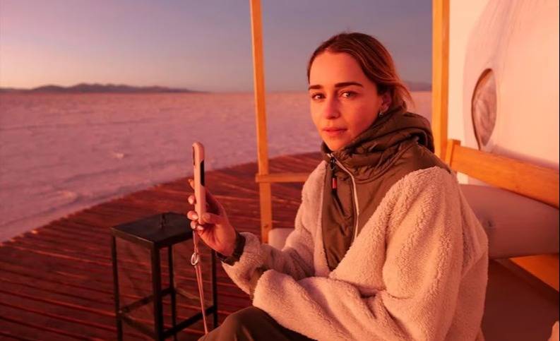 La actriz británica Emilia Clarke, protagonista en Game Of Thrones compartió en su cuenta de Instagram algunas imágenes de su paso por Argentina, donde decidió pasar unos días de vacaciones. Compartió fotos comiendo alfajores de maicena, con mate al lado, paseando por las Cataratas del Iguazú y por las Salinas Grandes, donde se la ve sonriendo descalza sobre el suelo blanco.