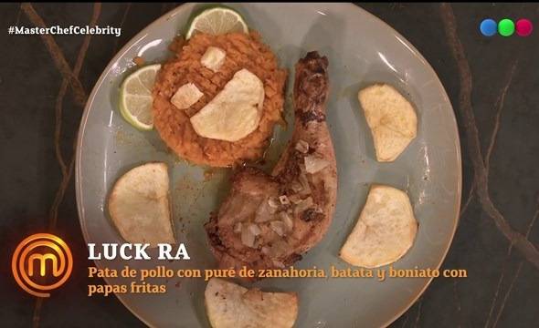 Luck Ra logró defender el lugar de su novia con un plato que le vendió al jurado como menú infantil. Presentó una pata de pollo como si fuera un bate de baseball y una carita de oso, formado puré de zanahoria, con papas y limón, a lo que sumó un papel a modo de servilleta que decía "dejame pasar que no quiero dormir en el sillón" en referencia a tener que cuidarle el lugar a La Joaqui.