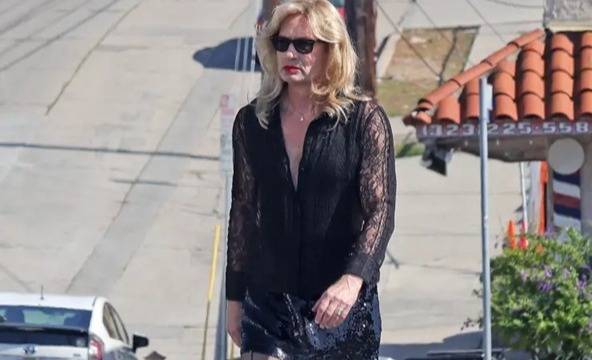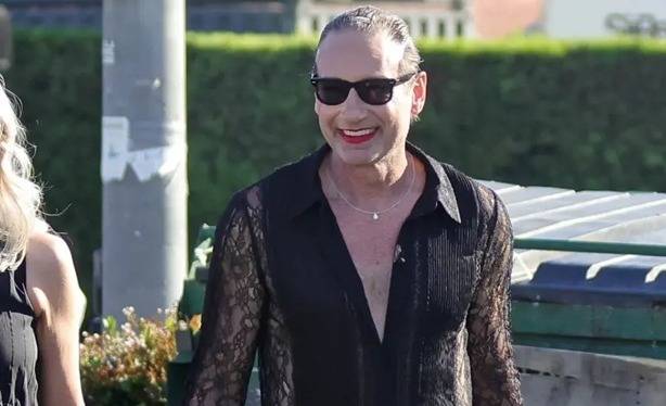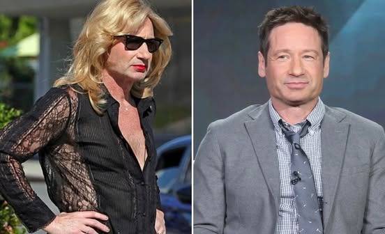 David Duchovny de Expedientes Secretos X se muestra con peluca rubia y un conjunto de lentejuelas