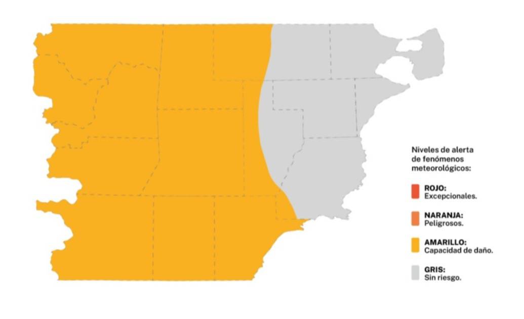 Los departamentos alcanzados por la alerta por viento incluyen Cushamen, Futaleufú, Languiñeo, Tehuelches, Río Senguer, Sarmiento, Escalante, Gastre, Paso de Indios, el oeste de Telsen, el oeste de Mártires y el sudoeste de Florentino Ameghino.