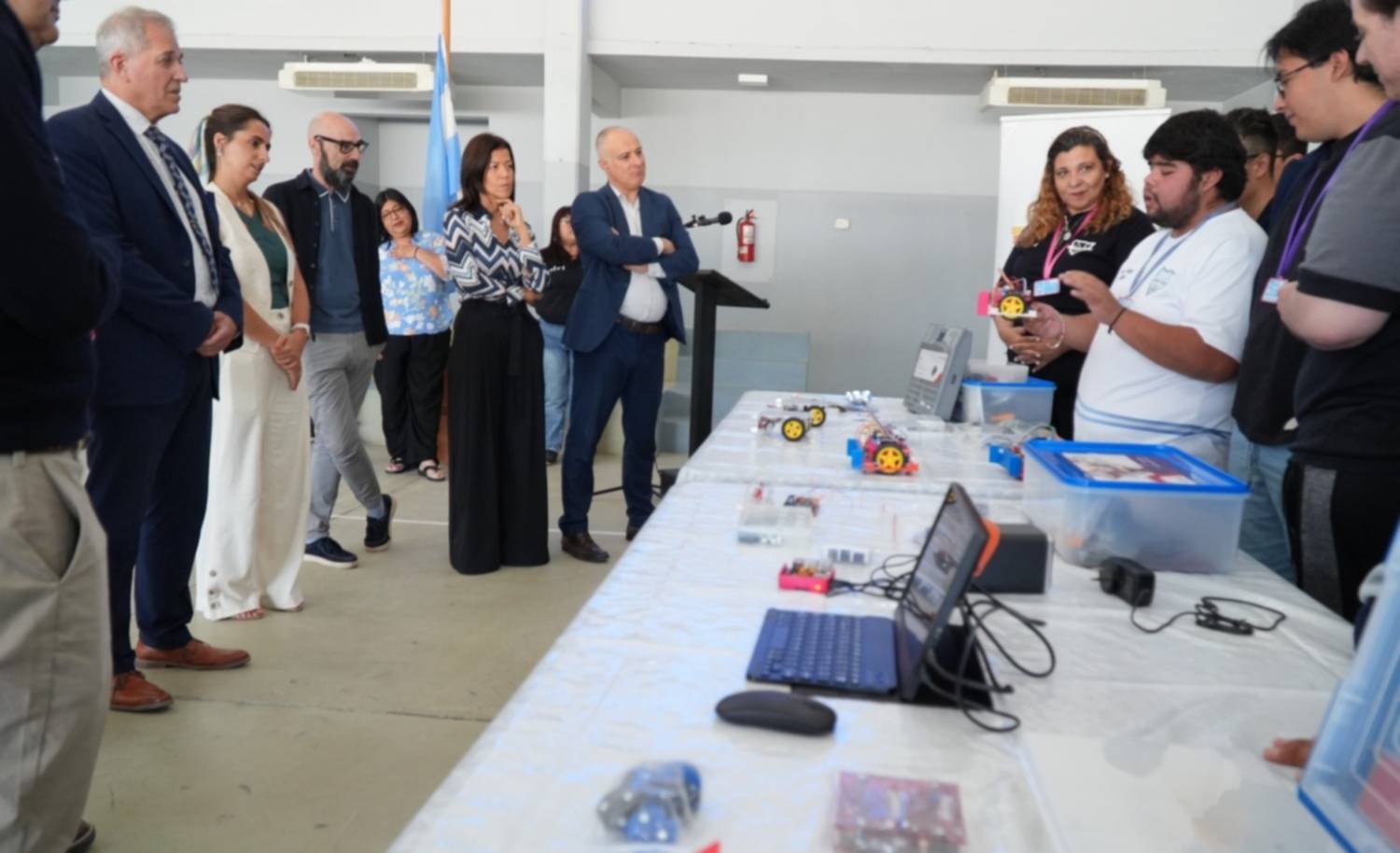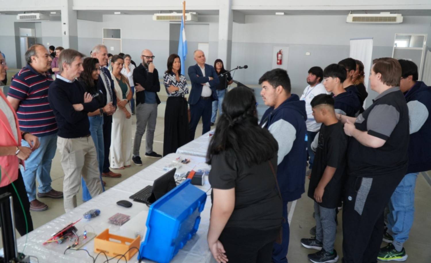 Durante la jornada, las autoridades recorrieron las instalaciones y tomaron contacto directo con los estudiantes, con especial énfasis en los espacios destinados al trabajo con tecnología y robótica. En ese marco, el ministro José Luis Punta expresó: “Quiero agradecer por el vínculo a quienes hoy nos visitan, pero también a todo el equipo docente, las familias y los chicos que hacen posible que estas cosas pasen en las escuelas de Chubut. Este es el resultado del trabajo de todos juntos, y gracias a eso hoy podemos ver lo que esta escuela ha podido hacer y hace cada día”.