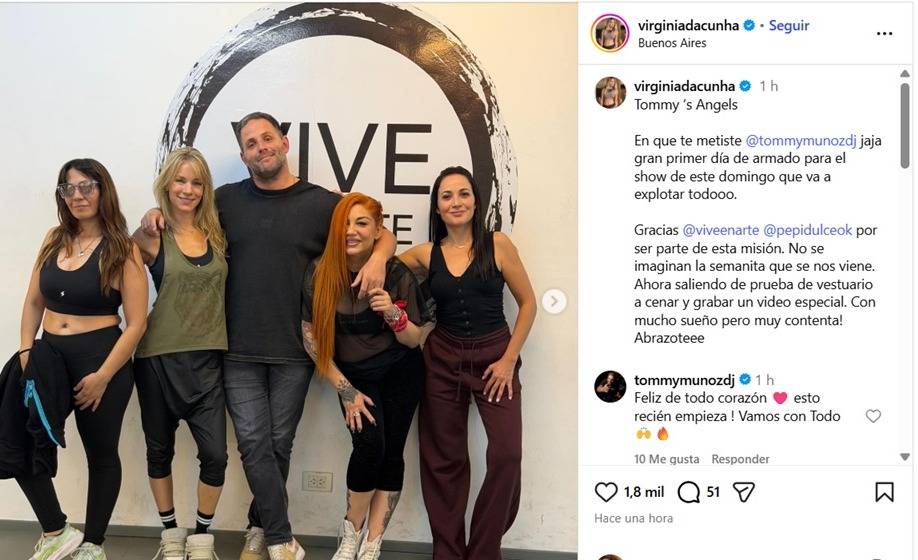 Virginia da Cunha, que actualmente vive en Mendoza, compartió las primeras imágenes del grupo durante los ensayos para las fiestas L.A.T.M. +35, que organiza el DJ Tommy Muñoz.