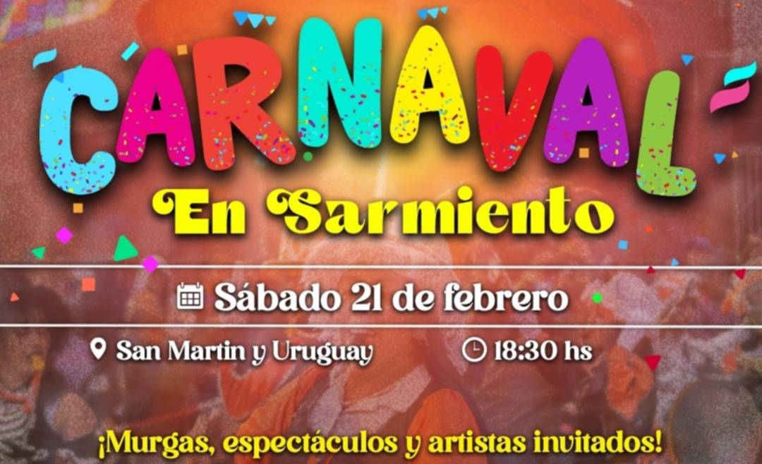 La Municipalidad de Sarmiento invita a la comunidad a festejar los carnavales que se desarrollarán el próximo sábado 21 de febrero en nuestra ciudad.