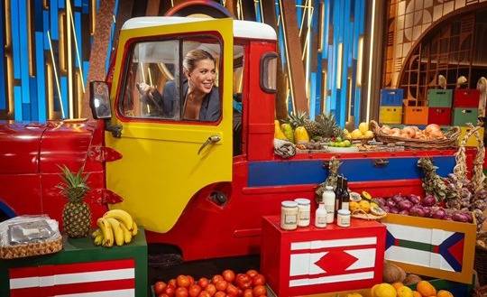 Dentro del estudio había un camión repleto de color e ingredientes para preparar las recetas que los participantes encontraron en sus mesadas. Usando un turbante con una fuente sobre la cabeza cada uno de los concursantes tuvo que buscar los ingredientes.