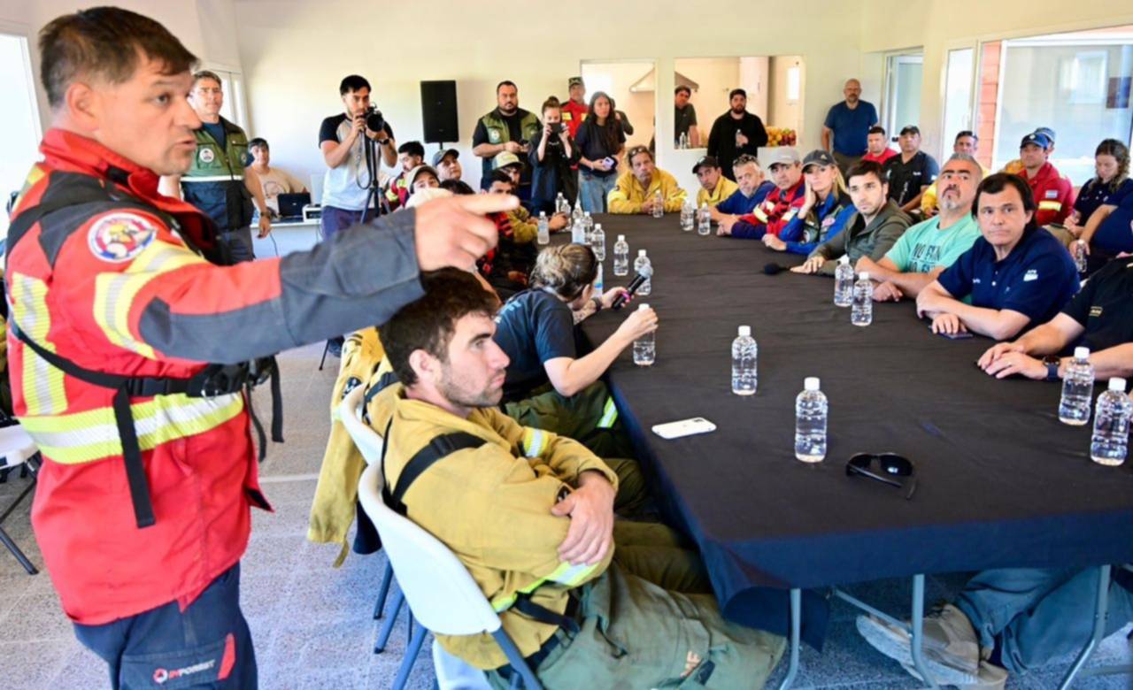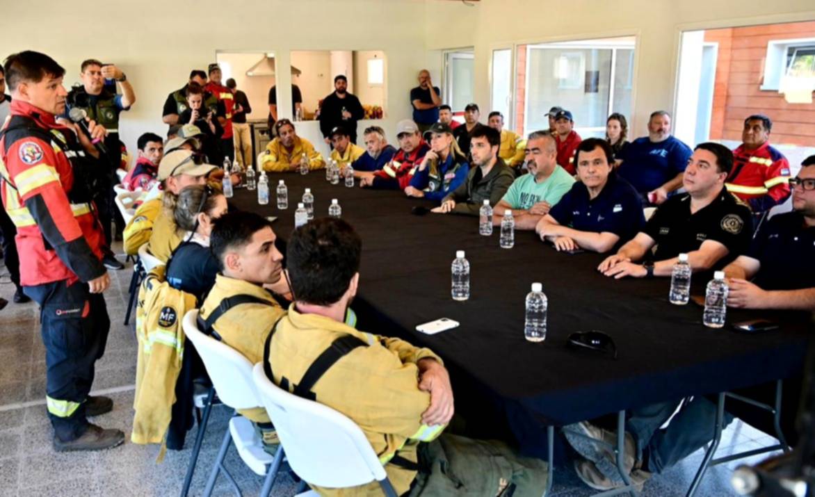 La reunión tuvo lugar a última hora de la tarde en la Subcentral de Coordinación y Despacho de Brigadistas – Las Golondrinas. Asimismo, acompañaron al mandatario los intendentes de El Hoyo, César Salamín, y de Epuyén, José Contreras; funcionarios del Gabinete Provincial; personal de la Secretaría de Emergencia y Gestión de Riesgo de la provincia de Neuquén; brigadistas nacionales y provinciales, bomberos y personal del Servicio Provincial del Manejo del Fuego, entre otros.