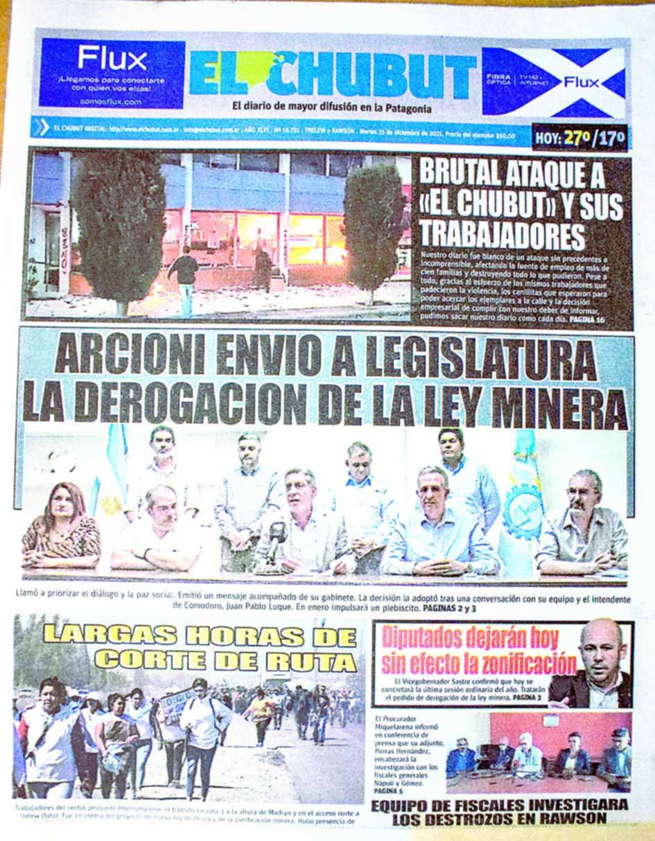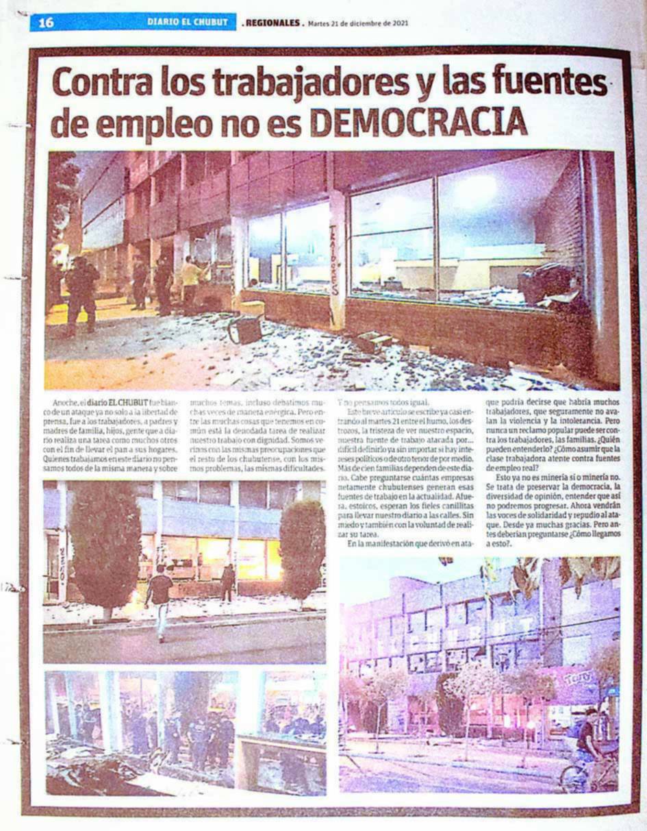 El ataque a El Chubut fue un ataque a la democracia, a la convivencia y al respeto. No hay justificación posible para la violencia. Ninguna causa, por más legítima que parezca, puede sostenerse sobre la destrucción o el odio.