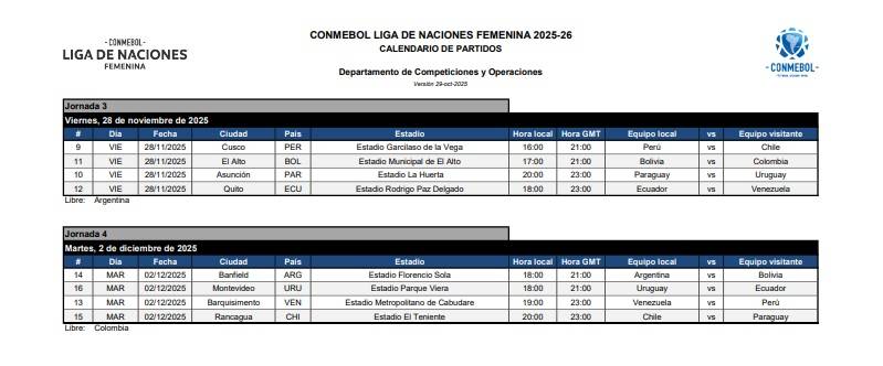 El sueño de la llegada a fines de año de la Selección Argentina de fútbol femenino a Puerto Madryn se apagó. Este miércoles, la Conmebol actualizó el fixture de la Liga de Naciones y el partido ante Bolivia -fijado para el 2 de diciembre- ya no figura en la localidad chubutense, como si lo hacia en el anterior anuncio realizado el 10 de octubre.